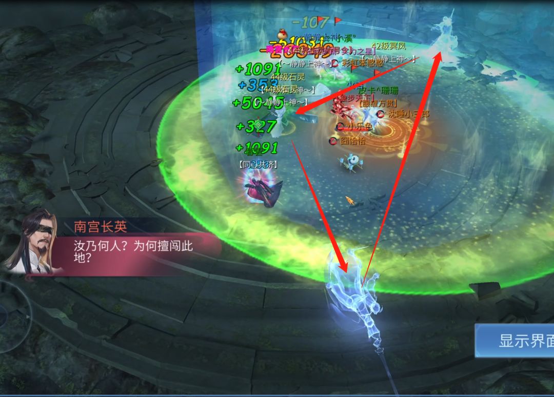 朝被点名玩家释放绿色弹道的治疗法阵,法阵内气血恢复快