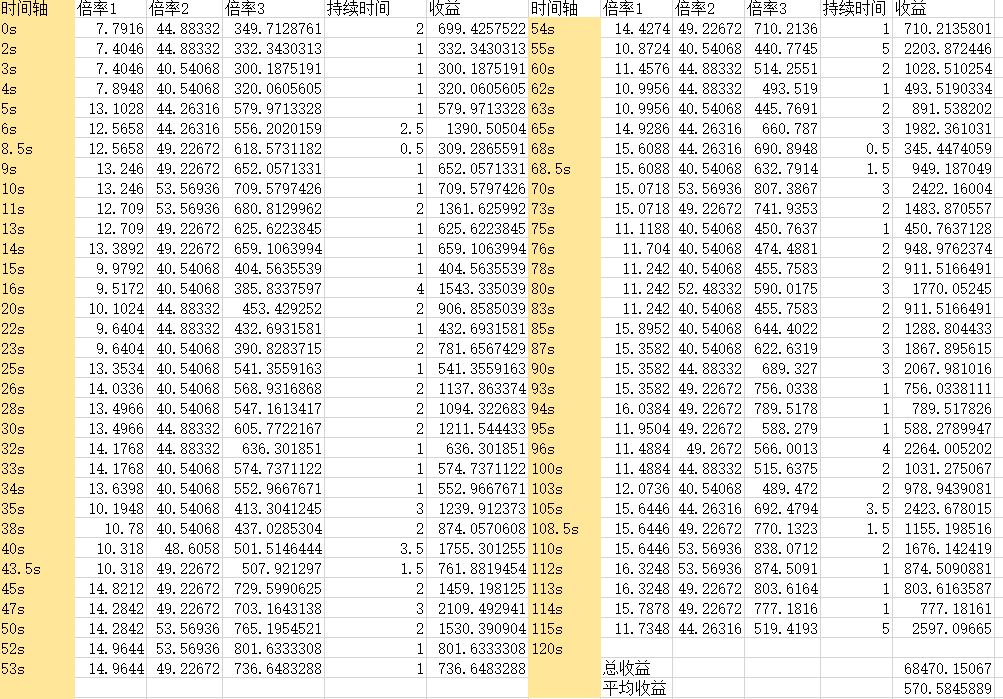 可以看出,在仙王爆发期间使用邪神会比平均收益高3%左右,同理,根据赌狗期望值与世界战中邪神有20秒的空挡时间,如果时间允许高技能频率带赌狗的可以在赌狗十层左右使用血瓶,这样收益更高。