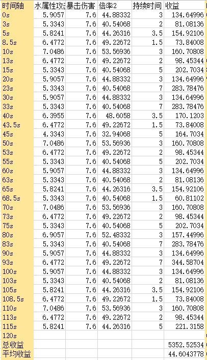 实际操作(技能伤害系数)(总伤害加成系数)(水属性攻击系数)(暴击伤害系数)的收益
