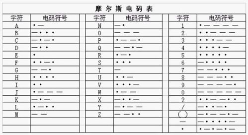 以上为摩斯密码对照表。但是摩斯密码要转换成中文,还需要四角号码。不会的话,可以查询,这里给大家说个链接。
