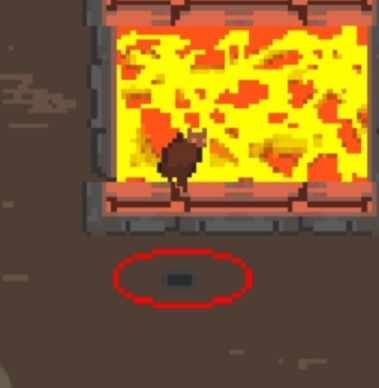 攻击方式:以玩家为中心的九宫格内,对玩家进行一次十字形的岩浆喷发(?)不包括玩家本身那格。