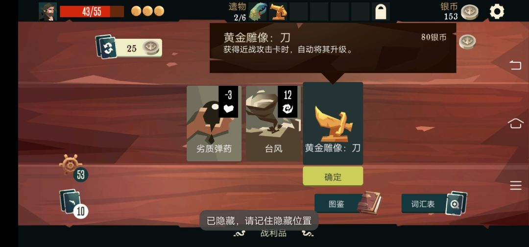 卡组选择:号令不能少,一张或两张高伤卡,根据遗物选择弹药为两张还是三张,防御方面,回血少就拿张盾,一到两张过牌卡,根据boss而选择制对性的卡
