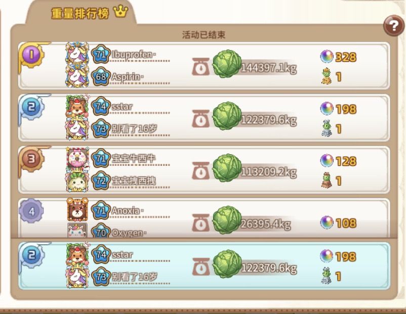 看着地中还有一小时成熟的甘蔗,泪水模糊了我的双眼。这个时候队友的出现就像阳光穿破黑夜,黎明悄悄划过天边,拯救了我。正在我含着感动的泪水准备陪着队友一起,秒了甘蔗继续肝的时候,发现,咦,我们还是第二。算了,继续回去喝奶茶。