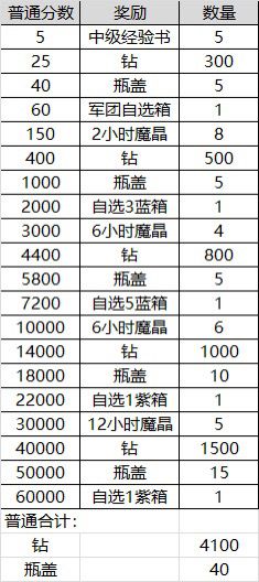 普通限时征讨奖励表