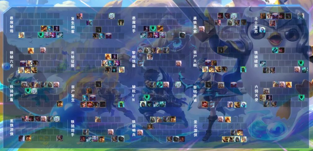 头像下方是最佳装备,头像上方是替代装备,一个体系的核心装备抓的少或者不吃固定装备又相对强势,就是最好的上分阵容,如果这个阵容还有很多同类替换阵容,就是最完美的上分组合体系。