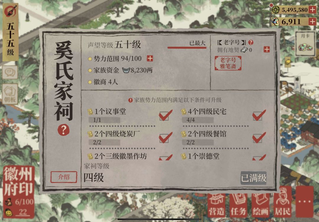 四级家祠有四名徽商,交易上限为4000。