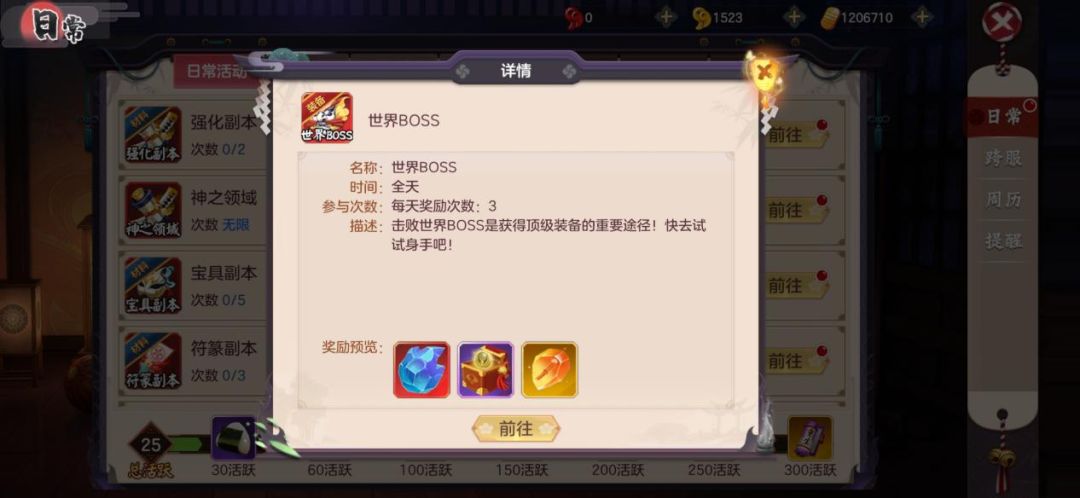 伏妖师们可通过完成主线任务、参与帮派活动、击杀世界BOSS等日常活动来提高游戏角色等级。