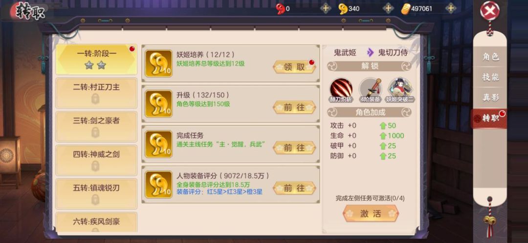 第二步:达成一转所需完成4个前置任务