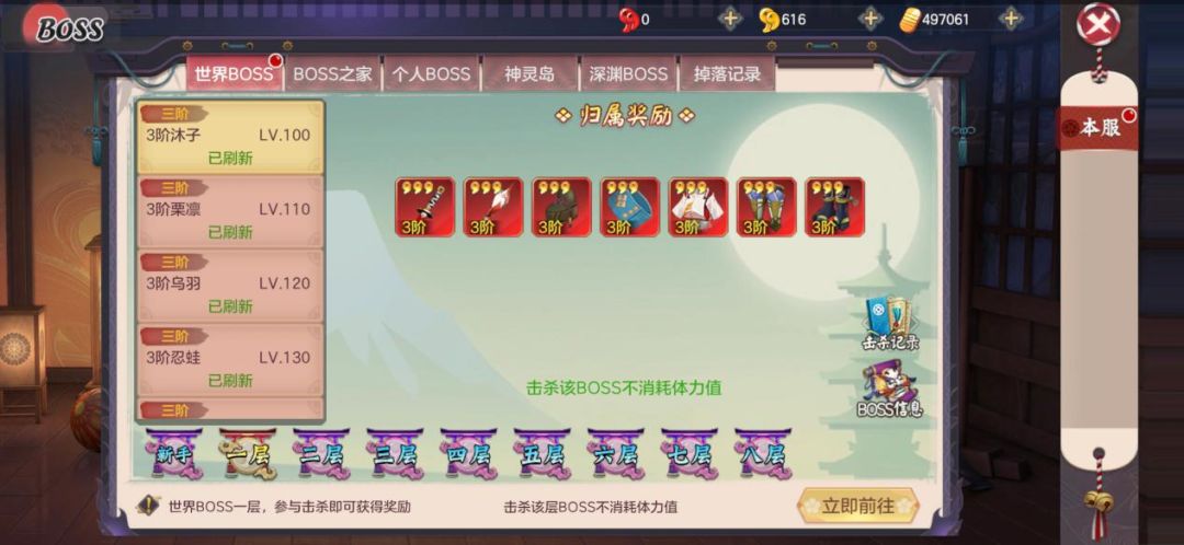 小师妹推荐大家去打一层的世界Boss,击杀就能获得3星红装。