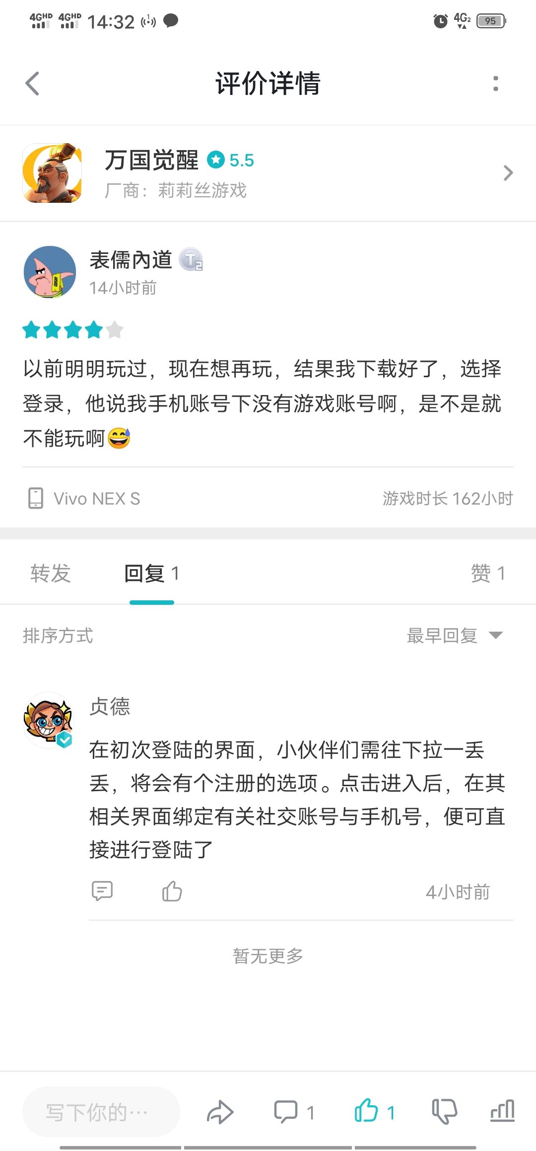 我人傻了,我明明记得我之前是可以登陆的啊,有个半年没玩,在登陆就说我是使用违规软件?那行吧,我也没证据证明我是无辜的,那我换个手机号创,为啥也不行啊,跟我说往下拉一丢丢,我拉到底都没有。。还有客服够高贵的,我10句话他回复一句话,我就想重新回来玩玩,我就是舔狗呗😃