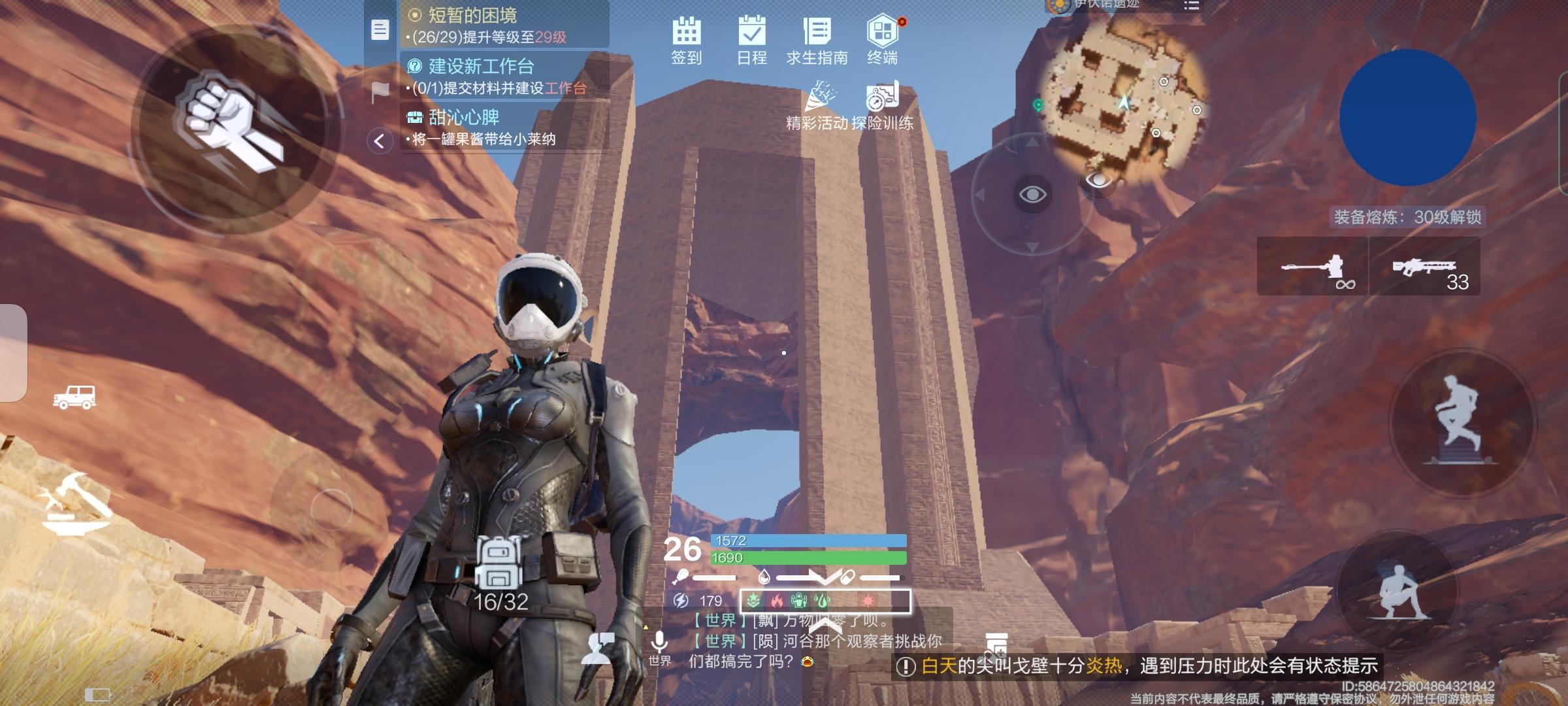 在游戏最开始的时候,终端会手把手的教你在这个末世中如何生存,同时,个人建议,在主线任务做完之后,会有让你提升等级的时候,这个时候,尽量多去做支线,获取联盟声望,有利于你在后续的制作装备,打造武器,升级装备,获取配件,升级配件,获取源码,升级源码等可以使你后期更强,有一些特殊材料,类似于拉链,镜片,弹簧,橡胶等等等等一系列的特殊材料,是并不可以制作的,是需要去各大地图内,寻找小地图里面的有个螺母一样的标志,用制作的工具便可获取特殊材料,所以大家刚开始看到这些材料的时候不要慌,一切都是可获取的。