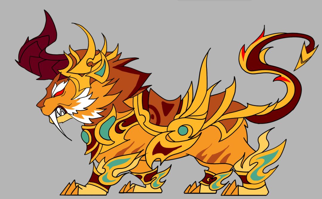 B、非常的凶狠,但头角有红色类似血液,不能过审~ 也是最终版本的一个初步手绘稿件