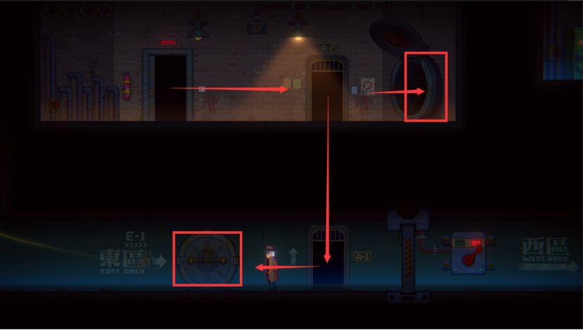 接下来我们要回到右边的维修工房间。这里有两条路可以走。