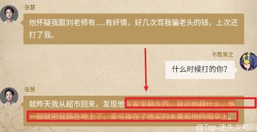 14、口供界面·张慧:点开与张慧的聊天界面,再点击下方开始对话(最后会有2个选项,选任一项皆可)。14X1