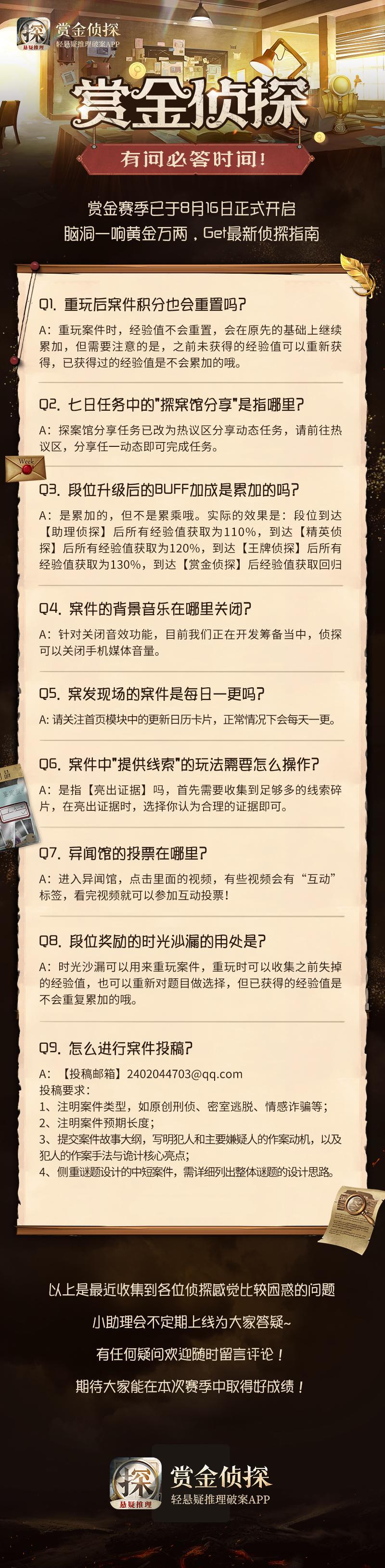看到有部分侦探对于活动规则还是不太理解,所以在大家努力探案获取积分的时候,本助理搜集整理了大家问的比较多的几个问题,马上就来为大家答疑解惑!