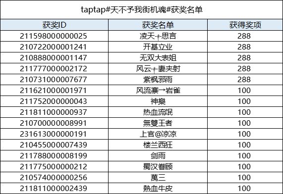 恭喜以下主公获得活动奖励,奖励会在7个工作日内发布到游戏ID邮箱内,请注意查收