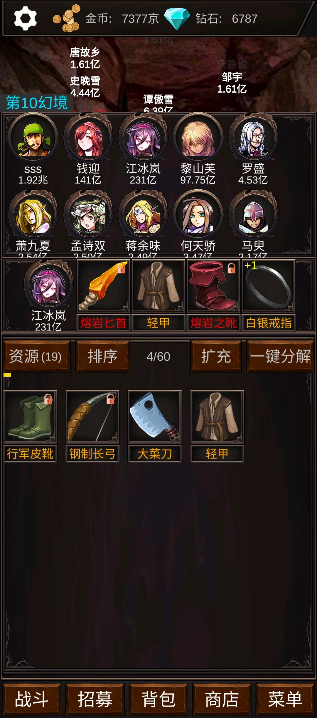 所以建议初期用不着大力挖矿,随缘好了,有品质高一些的挖矿佣兵可以留三两个!!多了毕竟影响爬塔????到幻10 这才是游戏刚刚开始的门槛吧???