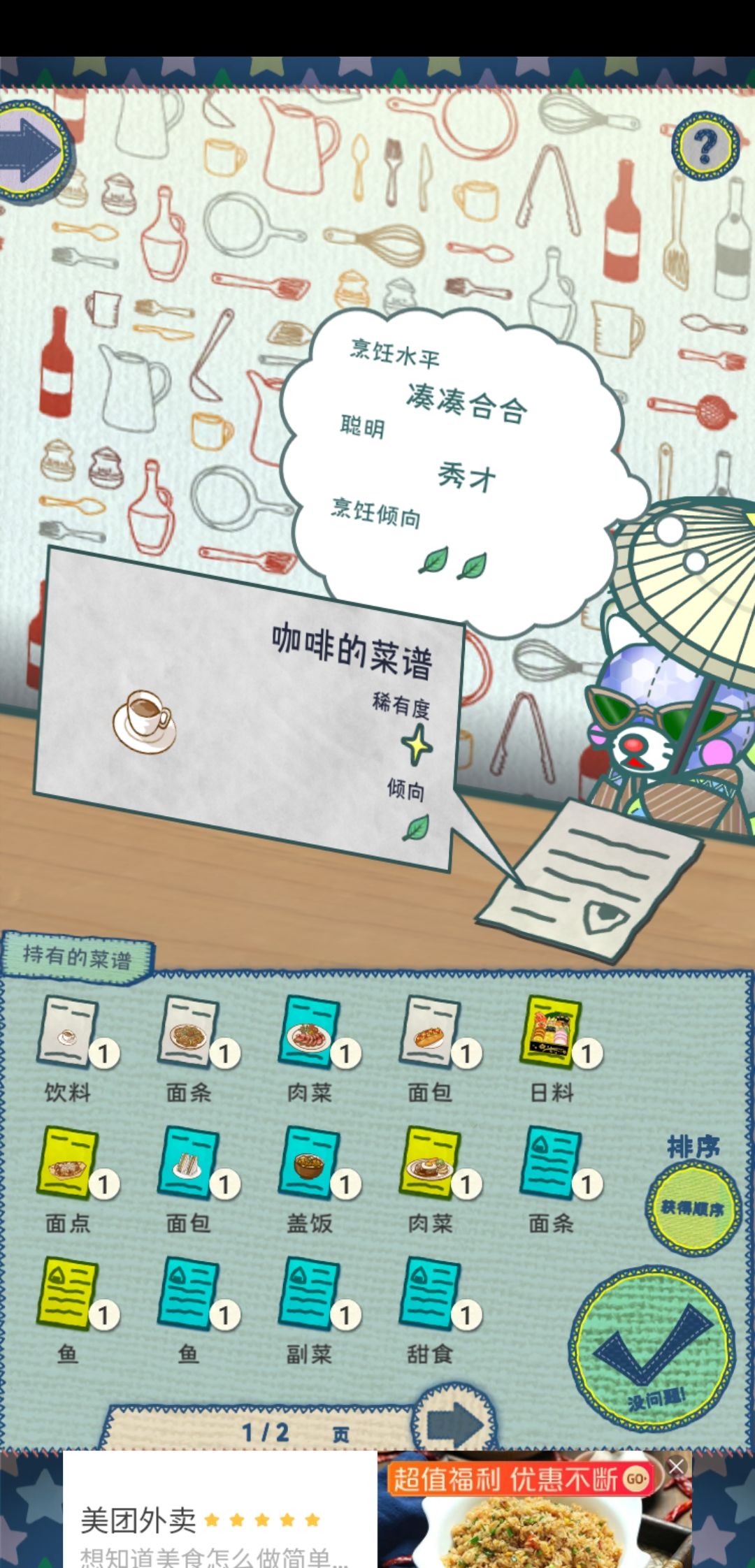 如果运气好前期就拿到了年菜芭菲等三星菜,那么菜谱上只留一两道高价三星就行,基本上三星菜评价和销量都是碾压低级菜的。