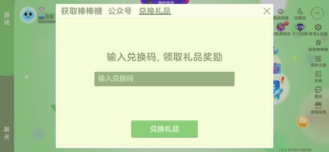 进入球球大作战-主界面点“+”-获取棒棒糖-兑换礼品-输入兑换码兑换即可。