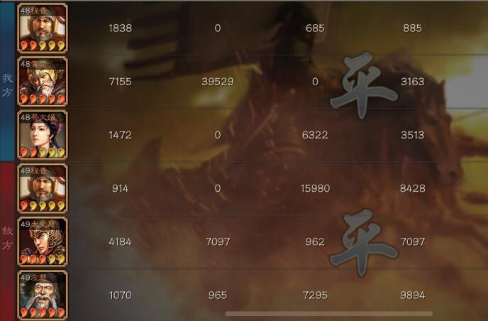 武锋阵内战,黄忠打了将近4.7W的伤害,对面足足奶了2.4W的伤害,最终成功战平。