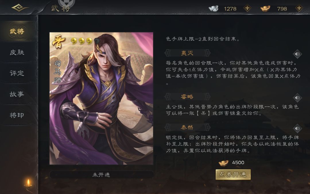 解析:一个极其妙的技能,可以短时间增强自己的生存能力,使队友有更多的机会输出,敌人需要更多的伤害秒你(可以不秒,回合开始司马师就变回原型了),而且,你是先失去体力再弃牌,要是因此失去体力至濒死阶段,还可以用手里的牌。在回合外也可以将这些牌消耗掉,白赚。