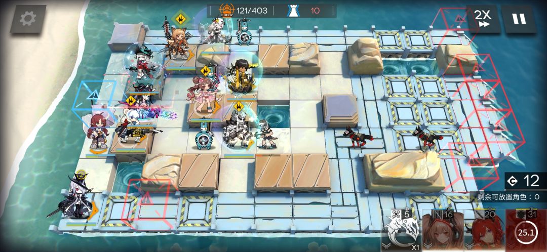 3,通过一定的布局,带上高台秒回50信物,高台不会被打到,不会被涨潮掉血(不要在意击杀数,借了干员没法代理,懒得打,阵型已经完成)(或许高练,只提供阵型思路)