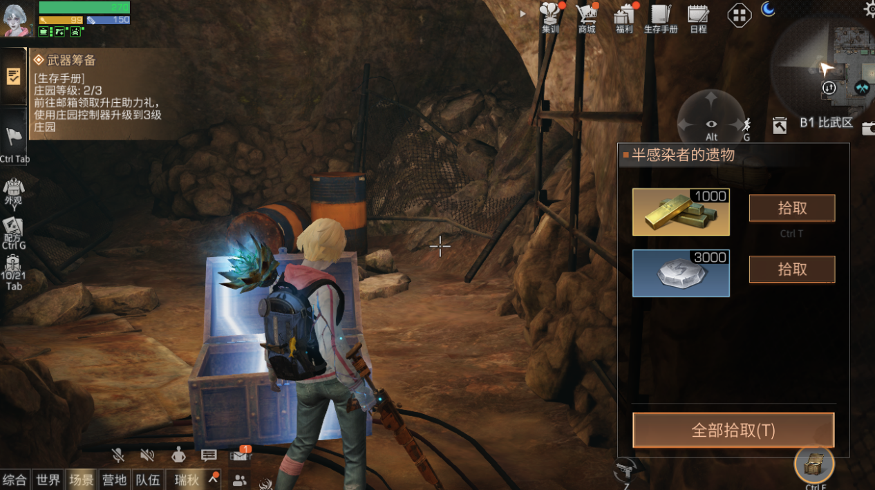 我们可以探索的地下城一共分为【B1比武区】、【B2生活区】、【B3医疗区】、【B4寄生源株】。
