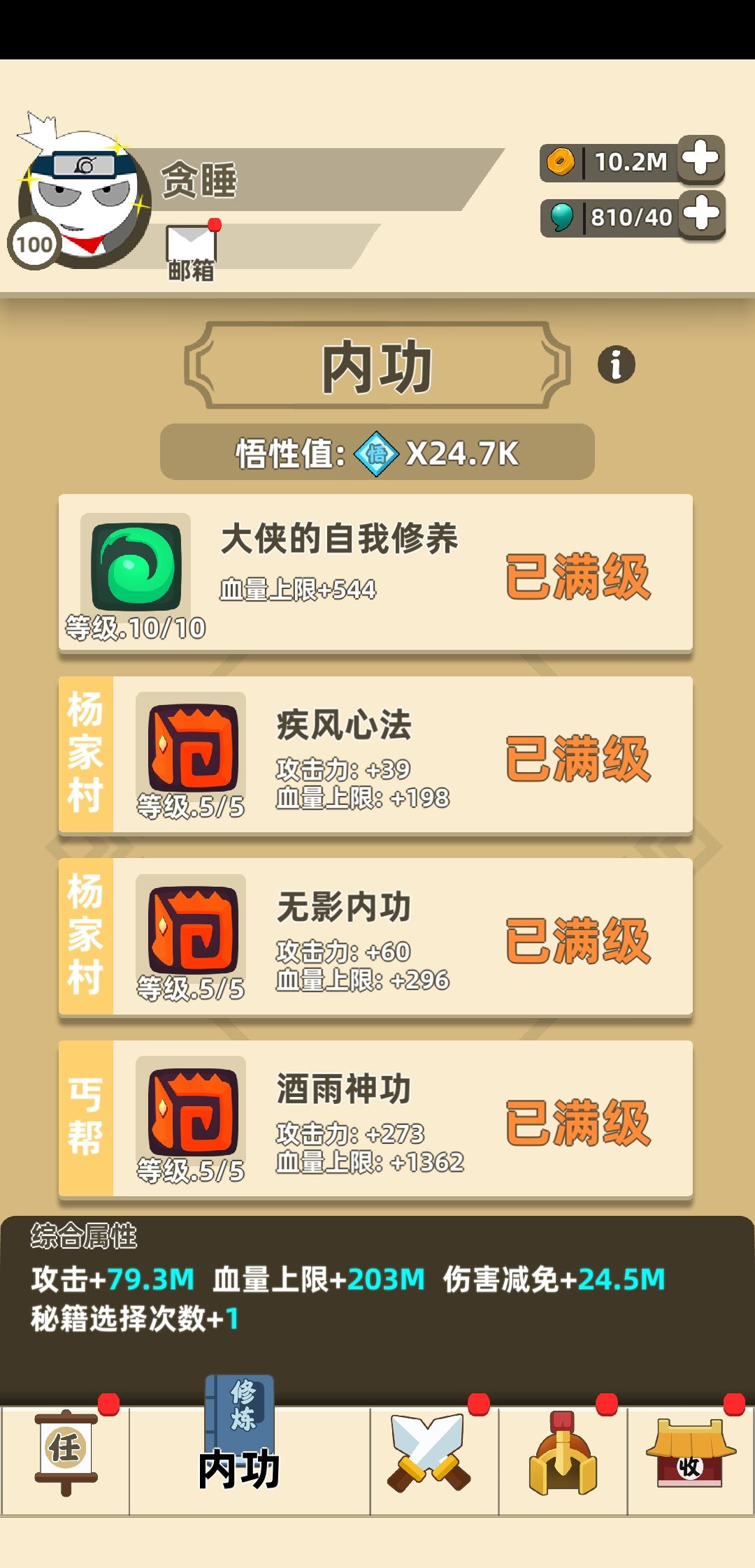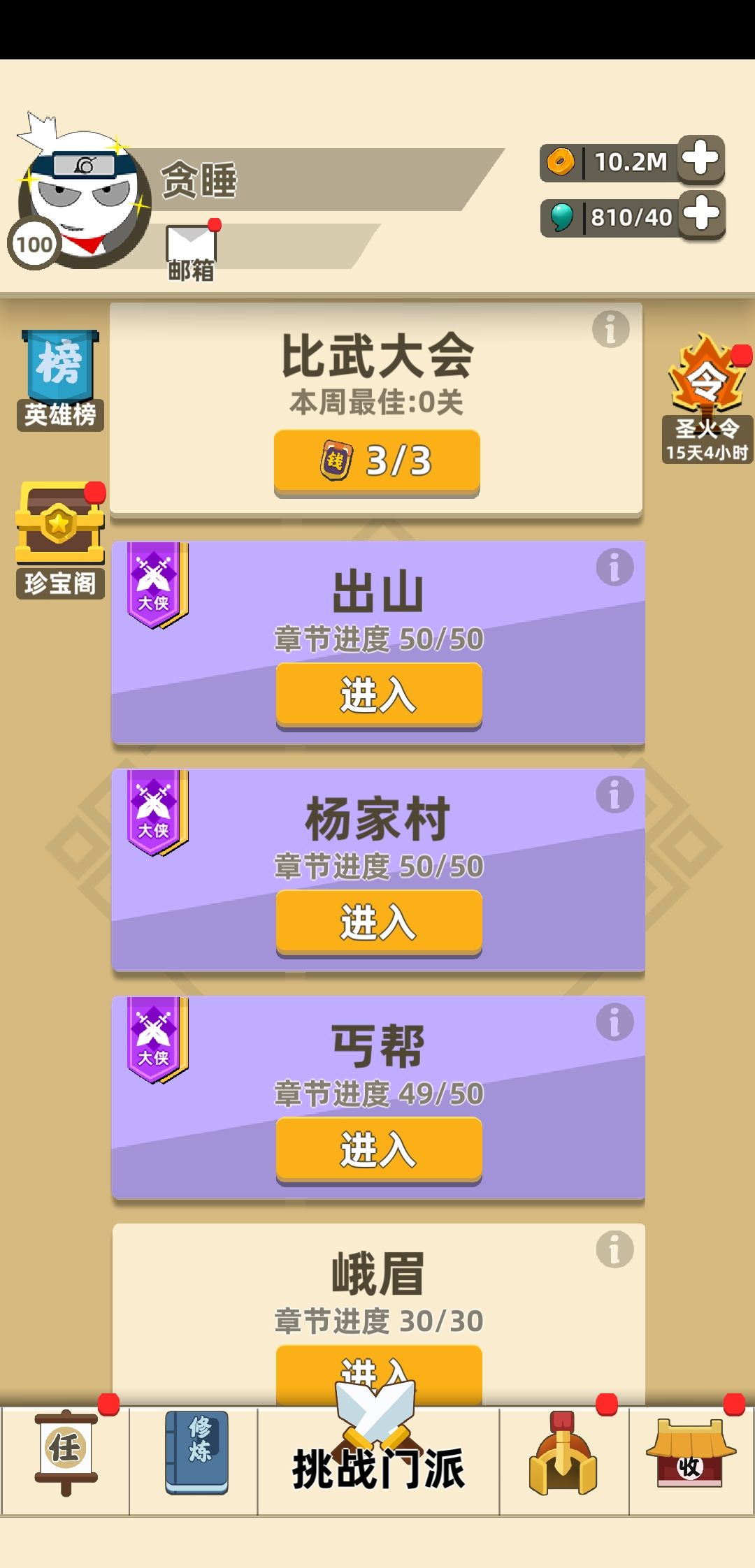 立贴为证,马上卸载,真的是肝的够够的了,可能是真的手残,也可能是打的次数少,反正蓬莱和丐帮是没过,按我这属性应该是能过的,蓬莱打了一共有十来次,丐帮打了五次左右,真的是没有以前那种激情了,属实懒得肝了,各位大侠,咱们江湖再见!退游