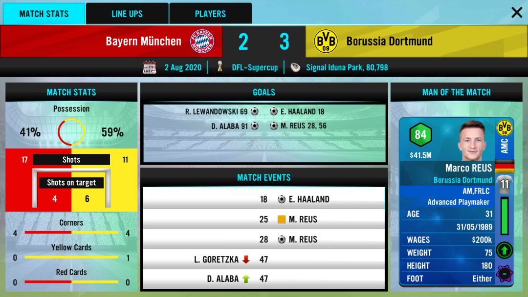 1、转会市场上原本想买哈兰德,但是看到切尔西拿1.08亿欧拿下比他身价低的桑乔时,我当场懵掉,于是转而6600万欧签下法蒂,再卖掉博阿滕和哈马,赚点转会费,升级设施(现在想来初始的一亿欧元+博阿滕+哈马不就可以买哈兰德吗😓),最后把外租的乌帕梅卡诺召回,后防线戴维斯+阿拉巴+乌帕+聚勒+卢卡+帕瓦尔互相轮换