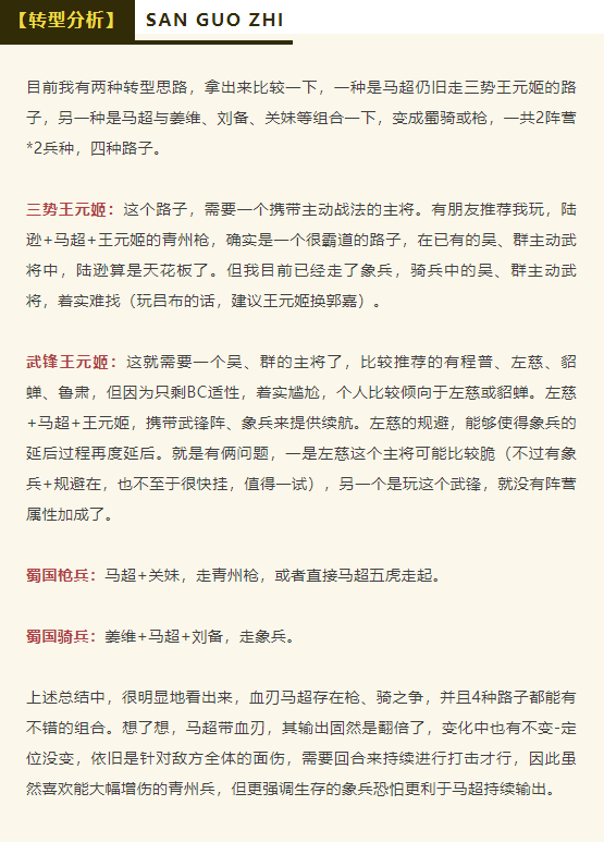 由于转型缓慢,所以暂时还贴不了配置图,不过不要紧,我会将玩过的血刃马超阵容,都陆续做一个说明。