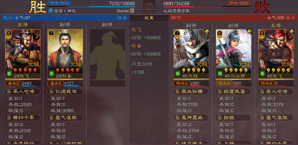 好在二队刘张,能顶,总算是打了下来。(换来换去,不知道怎么把张飞换到主将了233)