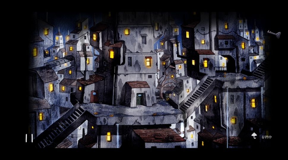 画面风格的美术确实不错,一座下雨的城市,透露着悲伤与神秘。画面色调偏阴沉,画面故意不完整,房间里的场景周围都有很大一圈黑框,而后期地下更是黑不溜秋。