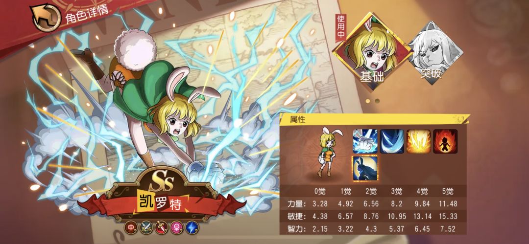 ⑤2019年11月6日,萌兔凯罗特华丽突破,首位拥有大招动画特效的角色,在战斗中上演着一场又一场视觉盛宴。