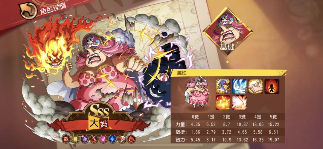 自白胡子后又一位四皇的登场,华丽的SSS品质,史无前例的三系标签、六大技能角色,大妈的登场无疑是《航海王启航》历史上的一大革新,大妈的超强实力也为纯电系增加了更多的可能性,成为了阵容中独一无二的核心角色。