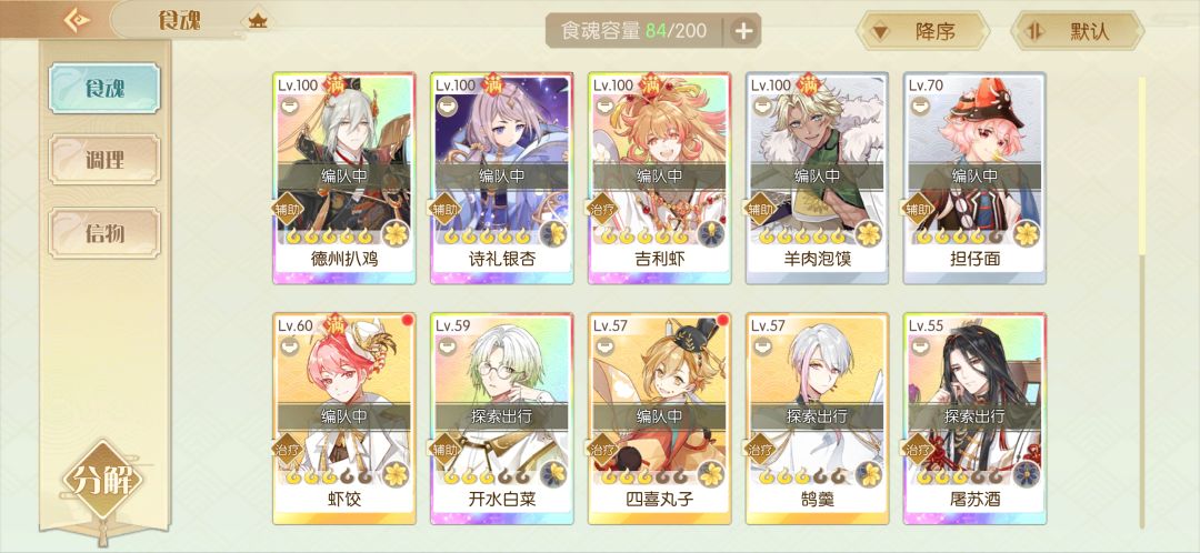 诗礼银杏:四花诗老师是从前厨艺的标配,可以带玛瑙,白釉,前期加血一般般吧,但是金身就很香,值得练,诗老师一定一定一定要肝出来好吗,这个御真的是超良心的,他和八仙一样,可以用到老,新手任务没做完的也不要紧张,任务结束后会把你的进度转化为食魂碎片,到时候去协会拼就可以了,升级给的第一个调料如果你开局没有抽到新手推荐的T0,T1输出的话我也建议先给他增加5%治疗量,后期加血没有吉利虾猛,但是他的适用性很广,四花的净化简直无敌,我的第一个四花就是他,到现在也不带后悔的
