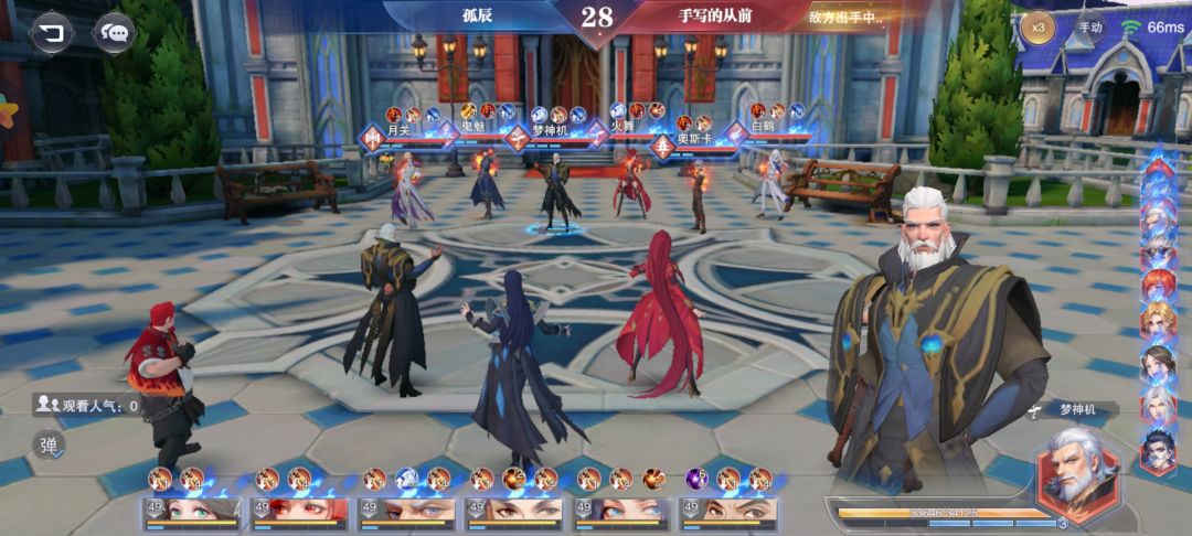 这个时候我们回到之前的问题(看上图),鬼魅开大拉动行动条使得菊花关的行动顺序来到了蓉蓉之前这个没问题对吧,但是如果我们技能都不放,下一回合蓉蓉因为速度比菊花关要快,所以他会先出手。这个也没问题对吧,那么就会有这种情况了,行动条显示你在前面,但是下一回合却是对方的魂师在放技能,就是因为你速度没有他快。