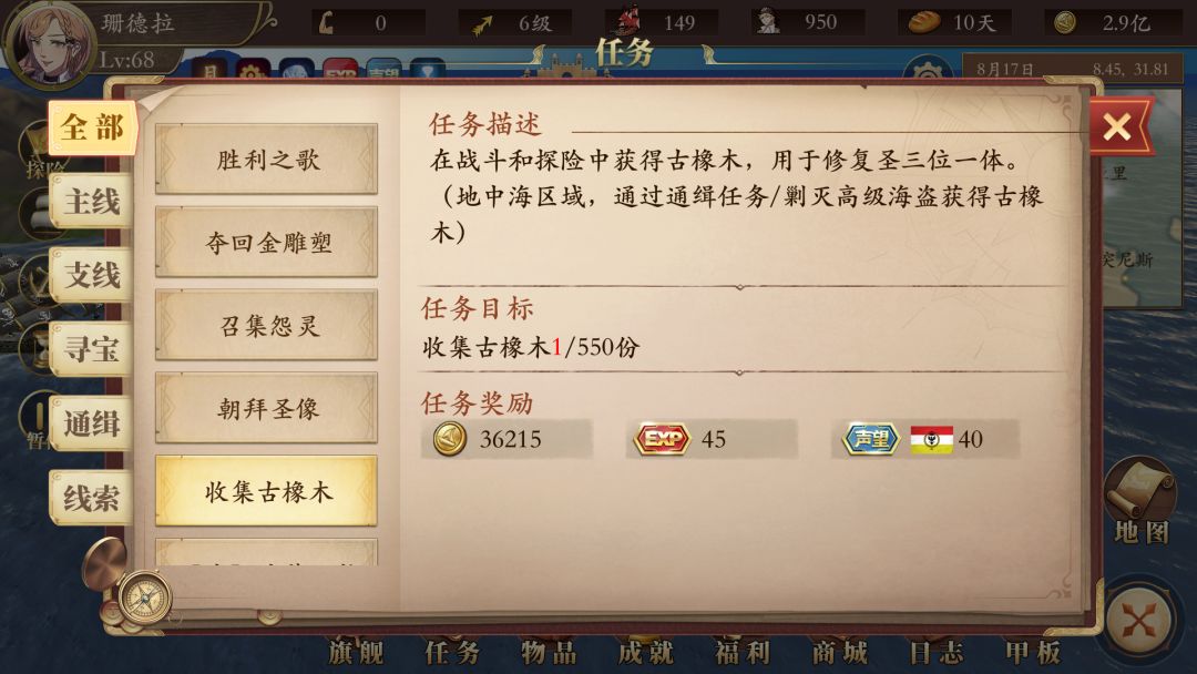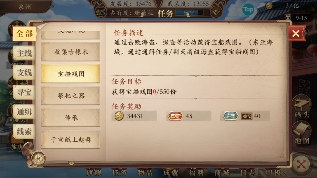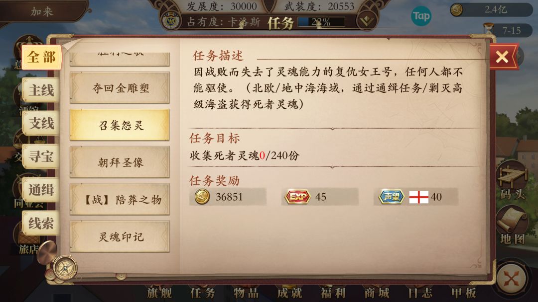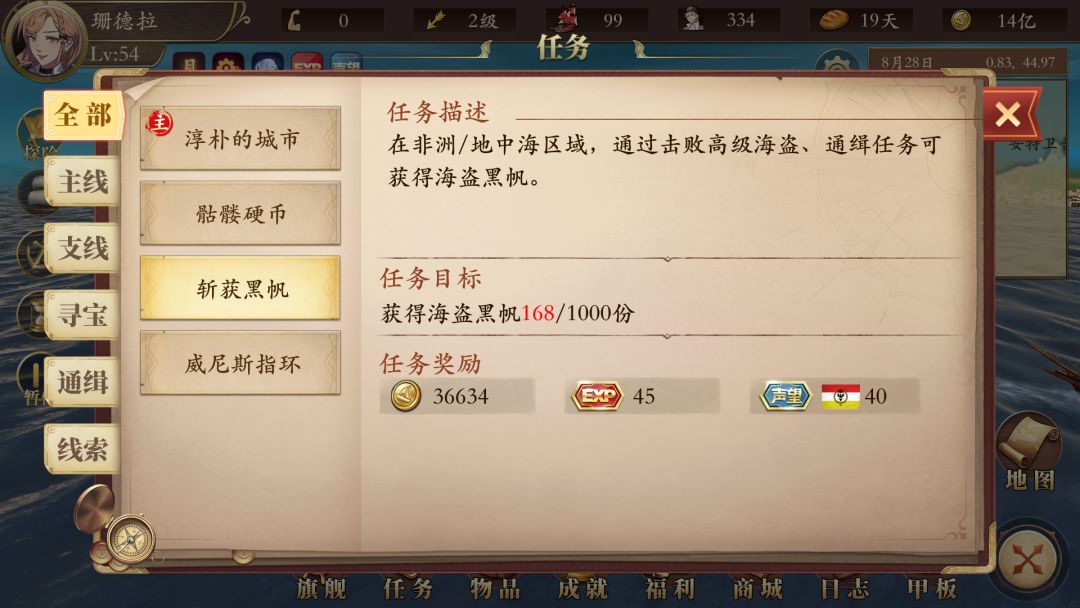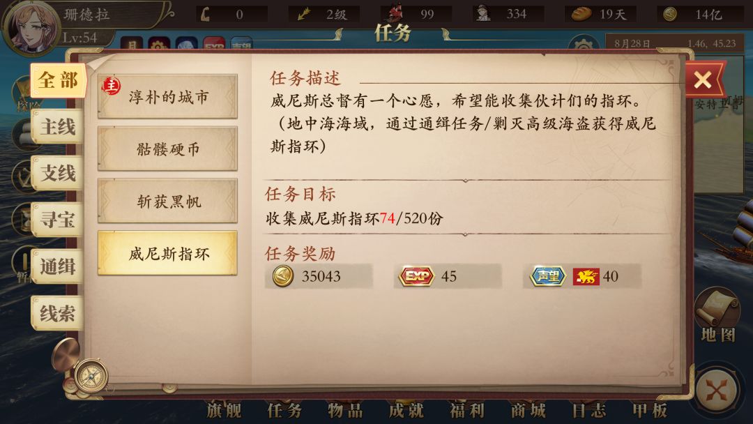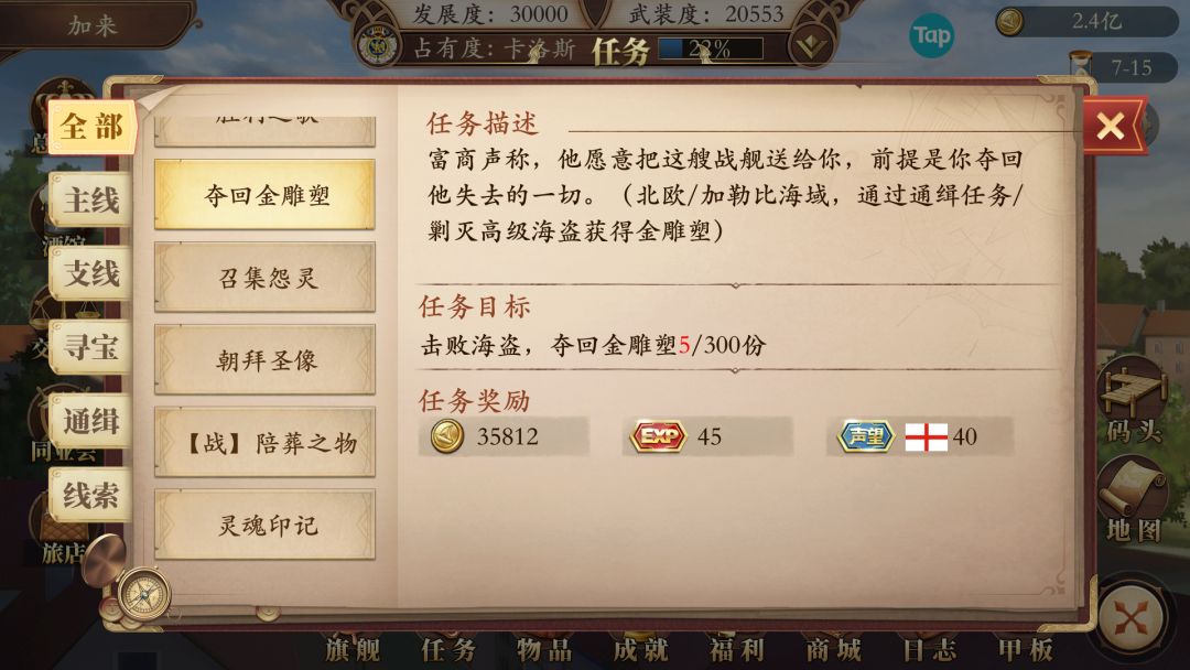 暂时还没有通关,有些船的条件看不到,后续在补充,只接到5条船的任务!