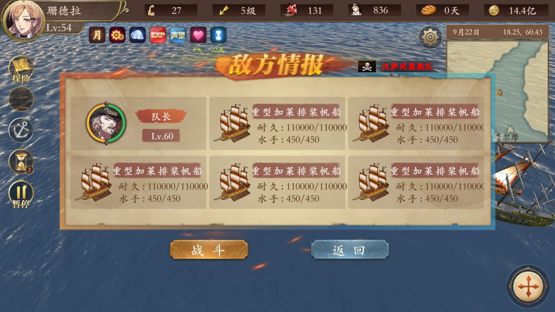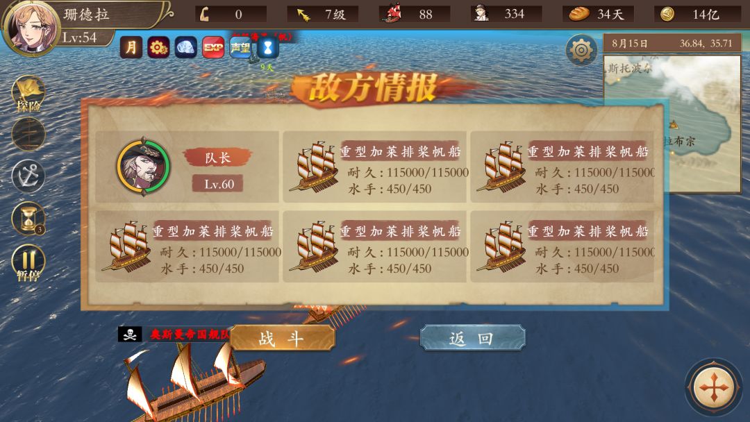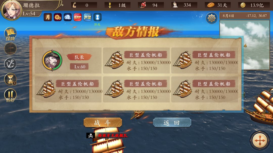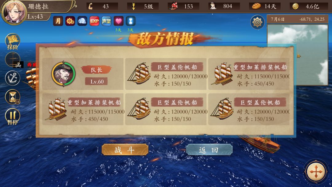 这个是西班牙西班牙运宝船,拿骚上面点,这货打水手的,反正我满编炮船居然没干过,耐久没掉多少,水手给我打没了。