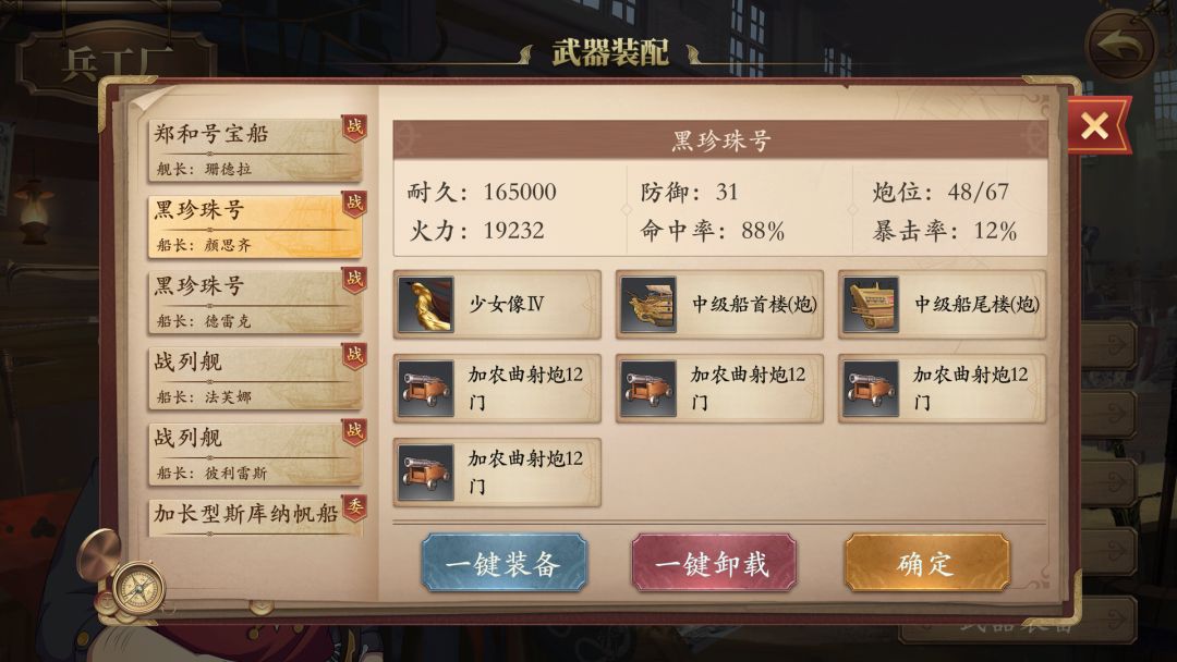 我的船配置,尼玛!黑珍珠火力还没战列舰高,炮孔少一个的悲剧!