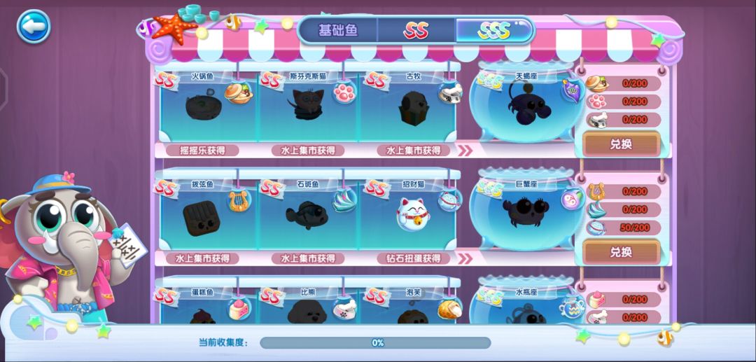 3.水族馆营业时间08:-21:00,在营业期间可以将不是很急需鱼宝的高级鱼放进去(比如抽到了招财猫,但是其他2只高级猫暂时无法拥有,那么可以让招财猫去水族馆营业),营业结束后再让高级鱼回到鱼馆生产资源。