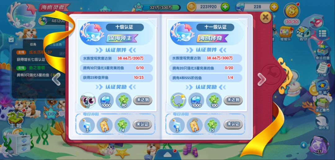 8.上图有馆长认证和强化鱼的任务,那就说说它们吧。