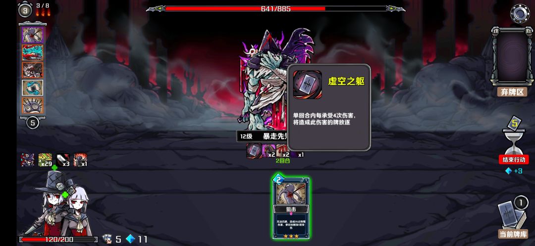 就这个,明明写着单回合内的第4次攻击会被放逐,实际是少了“单回合内”这个限制,这就导致我三张攻击牌全没了都打不死boss