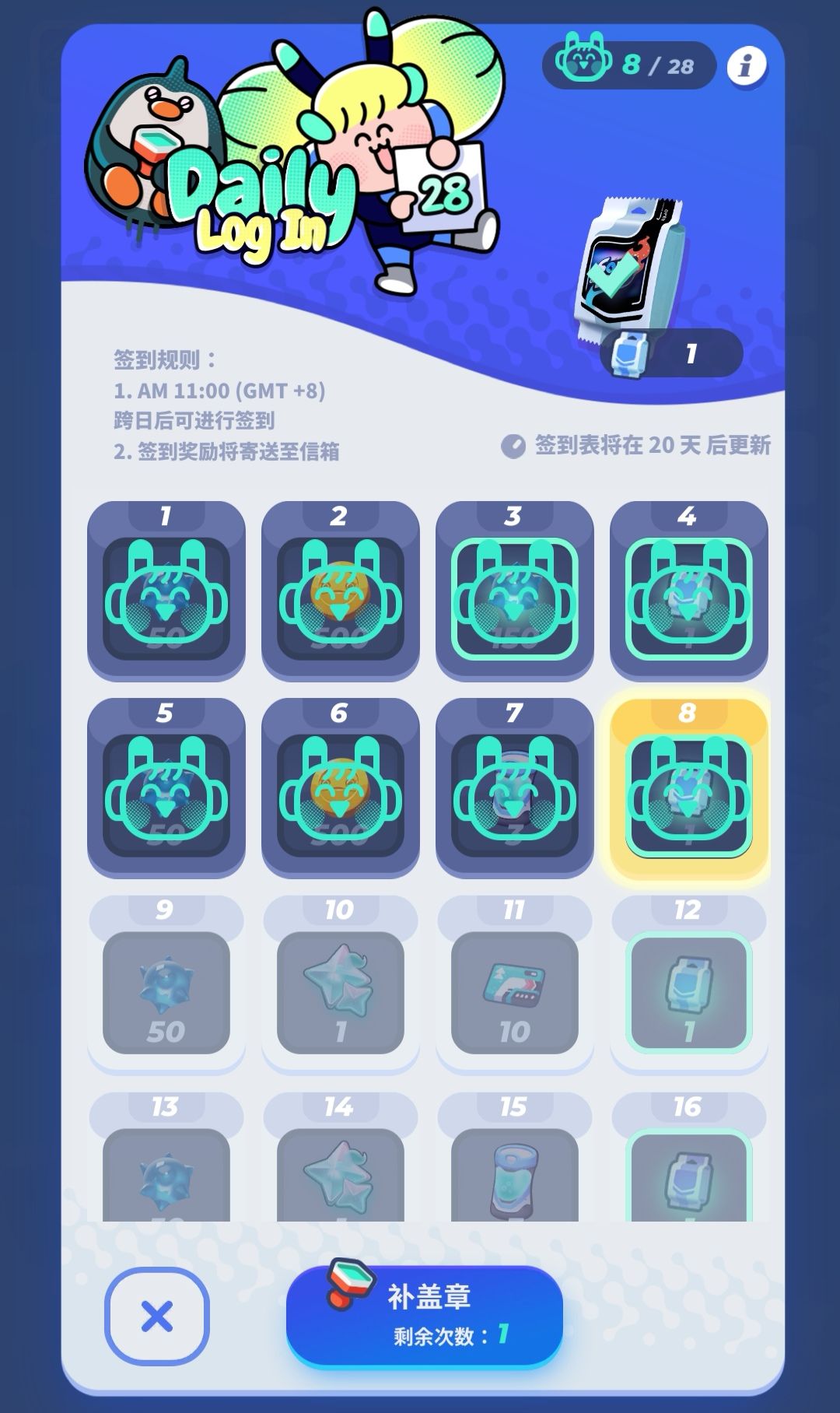 时段任务的奖励虽然不多,但慢慢玩还是有可观的奖励量。时段任务完成7次,还可以获得卡牌礼包的奖励,卡牌数量、卡牌品质随机发放。