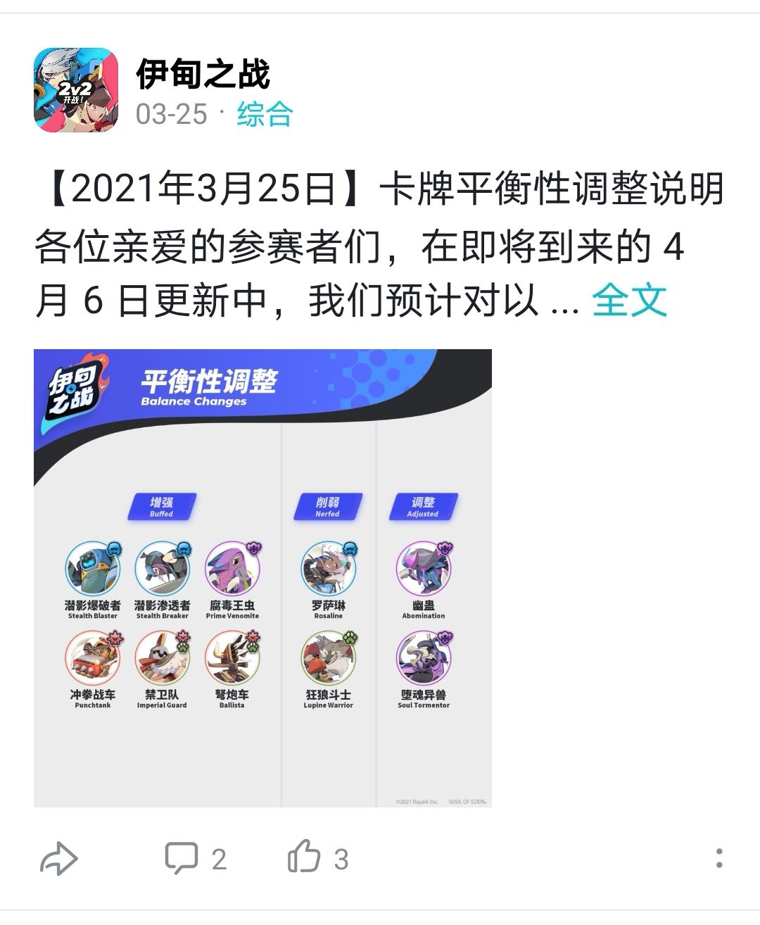 雷亚官方在修改卡牌属性前,完全没头脑的依照出场使用率来判定属性的增减。比如狂狼斗士一口气削弱了三次,希尔达普普通通现今加强了不少,蚀牙后虫先削弱后又加强了,潜行爆破者要削不削的导致海外玩家(台湾雷亚从不关心我们大陆地区是生是死,成都龙渊只是大陆地区的代理方毫无话语权)群恨民怨后才削弱,罗萨琳看似削弱其实依旧强大,机枪炮台本身就实用却继续加强。