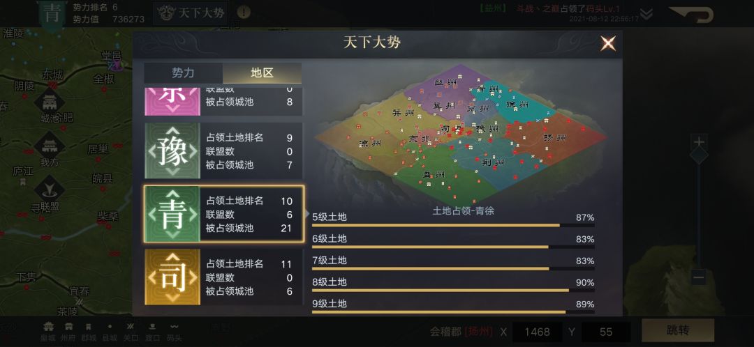 青徐的土地数据。占领数量倒数,各级土地占有率86.4%