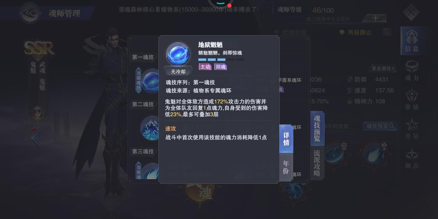 鬼魅比较吃魂力,开局没有回魂,缺治疗、速度、不能解除减益buff,单挂鬼魅第二回合会出现空挡 ,对回溯条件要求高,不稳定。