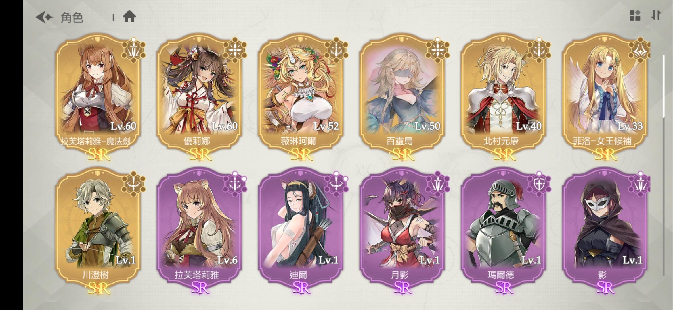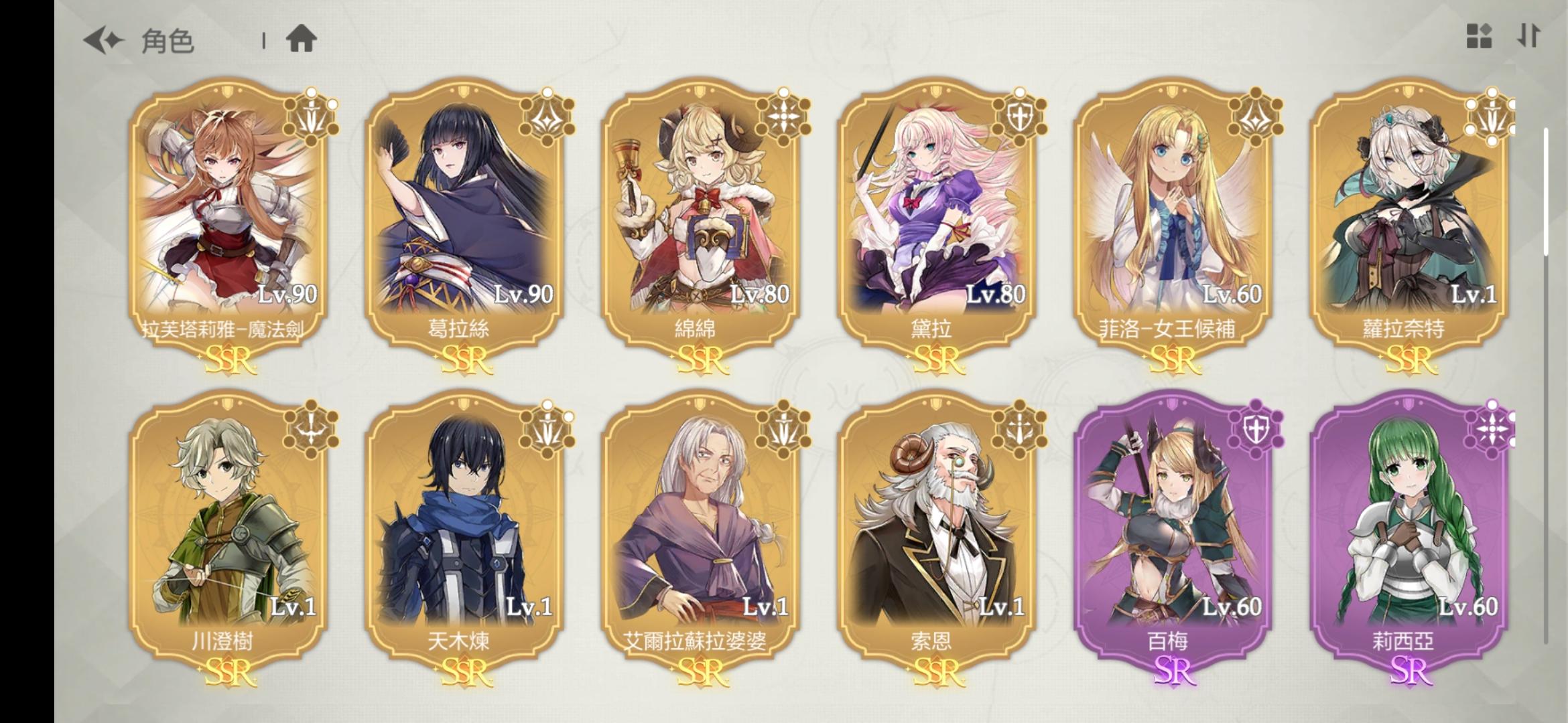 大号主力队阵容绳索盾(偶尔推图换药盾回血),葛拉丝,魔法剑,绵绵