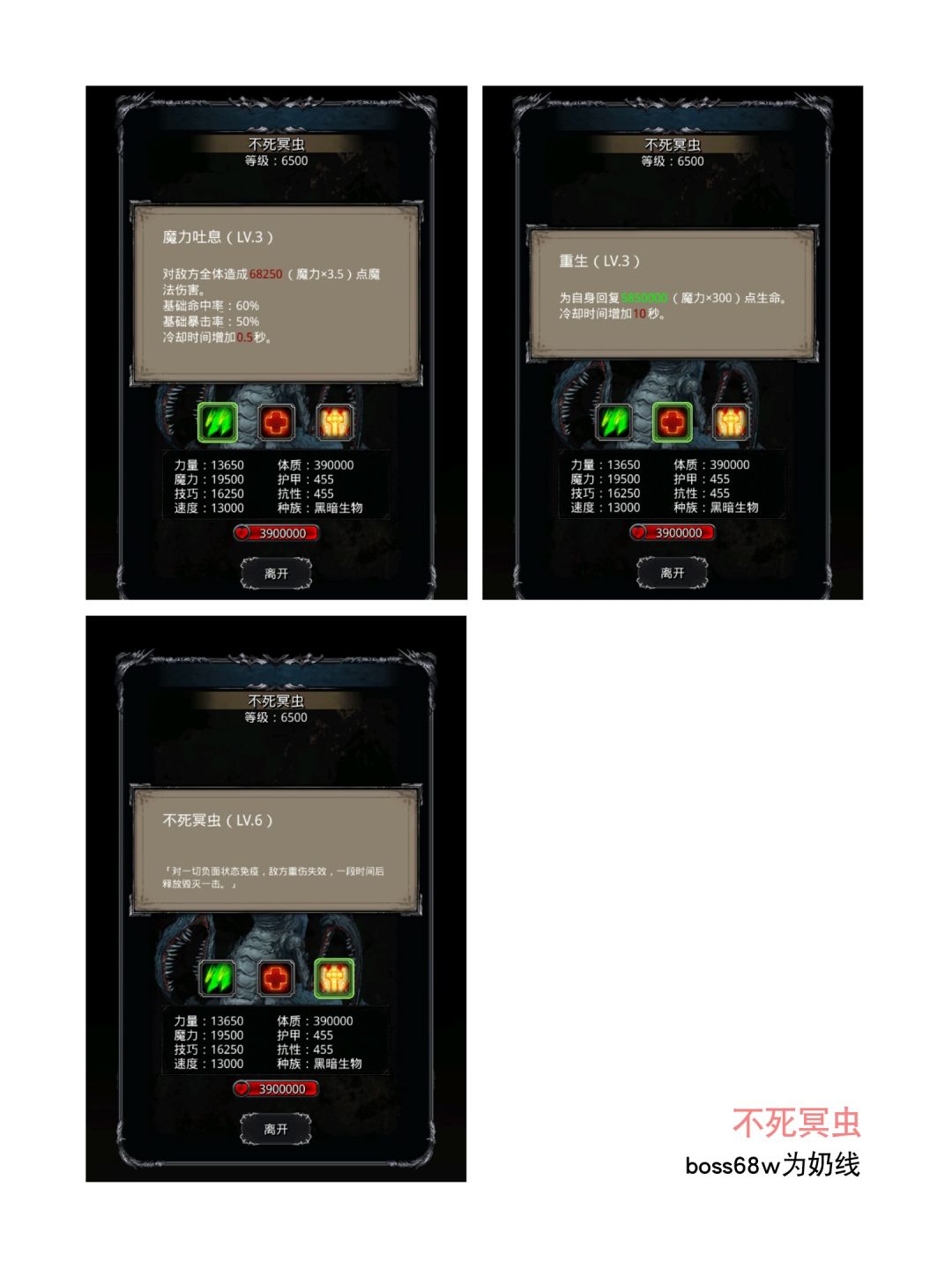 该boss奶线差不多是58w。楼主多次亲测实验结果:当boss血量下降到哪怕是57.几万时,下一次出手必定是回血技能。
