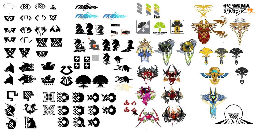 在此之后,我们完善了百万亚瑟王世界的宏观编年史。接着我们对每个文明或势力在不同历史时期的生态做了细致的微观设定,比如每个邦国的政治制度、军事体系、工业化程度、能源获取、农业技术和宗教等等。我们甚至为每个邦国中的各大企业都做了详细的命名和LOGO设计,哪怕这些名称可能只是以缩写出现在某个杂兵身着服装的一角。