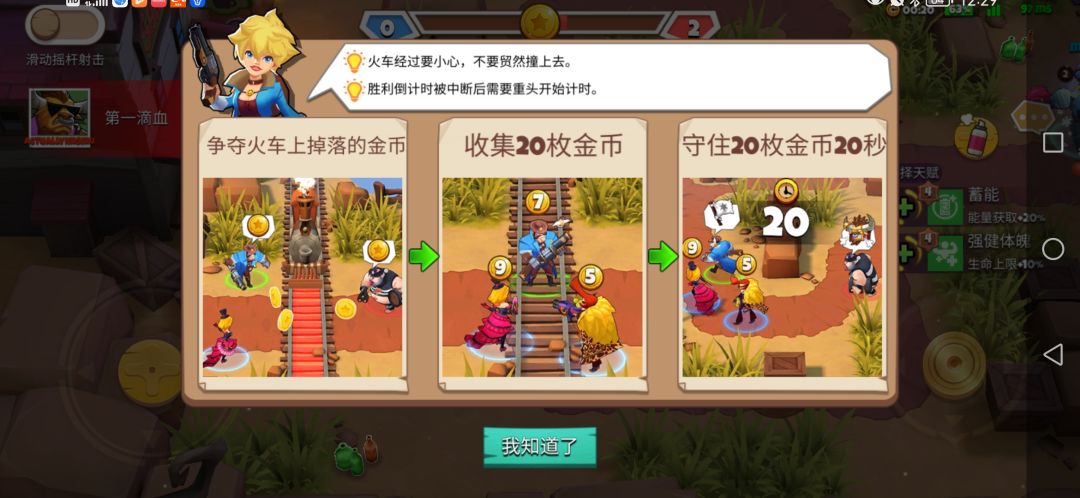 模式内设置有火车道,载着金币的火车每隔一段时间从火车道经过,并掉落几块金币。